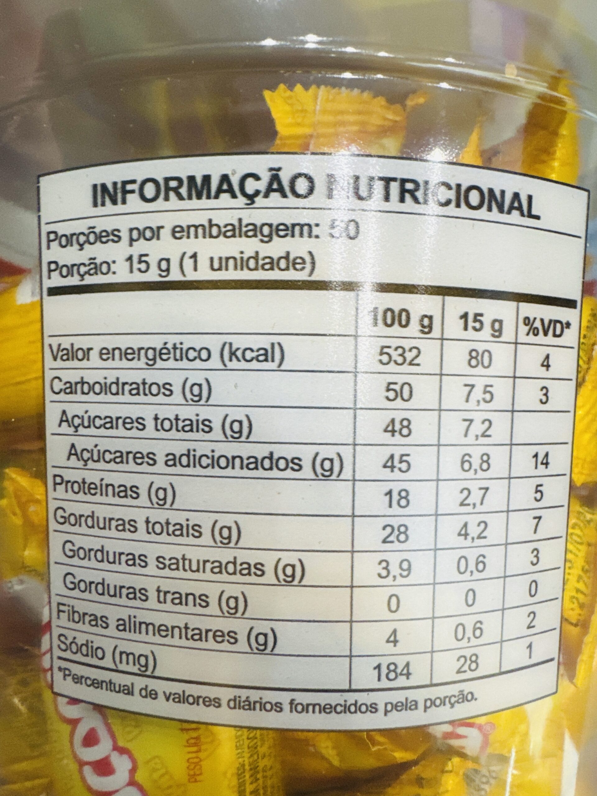 Peso líquido 750g contiene 50 unidades.